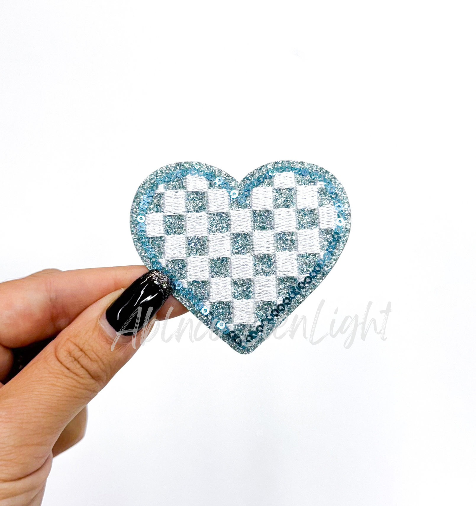 Light Blue Checkered Heart Sequins Glitter Patch