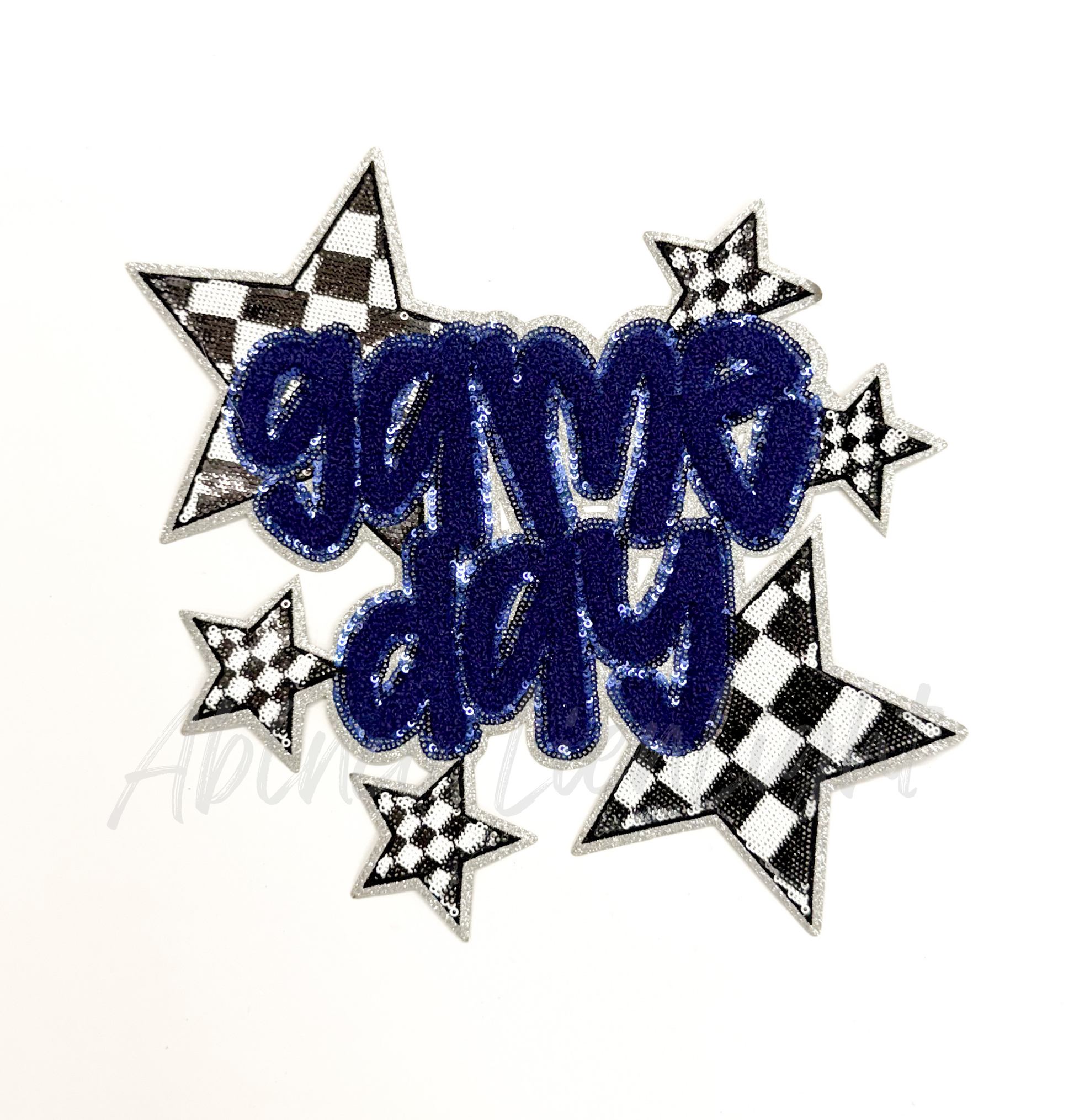 Navy Game Day Checkered Star Sequins Chenille Patch